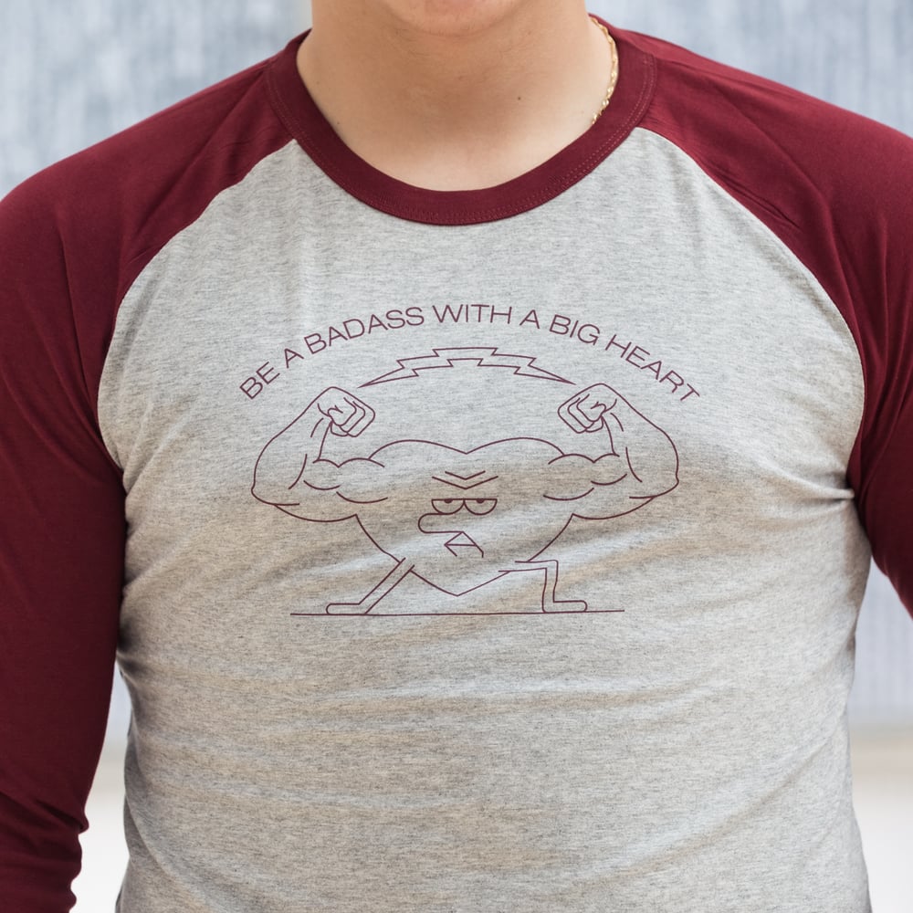 € 32.0T-SHIRT MAN long sleeve BADASS grey / burgundy sleeves -